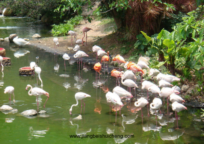 百鳥居設(shè)計獨特,一個由5條巨柱支撐的巨型不銹鋼絲網(wǎng),罩著面積達2500平方米的空間。內(nèi)分4區(qū):地棲鳥類區(qū)、森林鳥類區(qū)、叢林鳥類區(qū)及水禽鳥類區(qū),共有鳥3000余只。