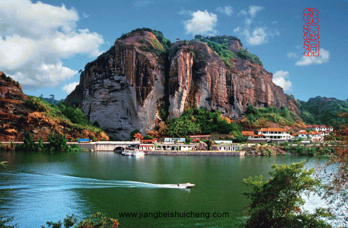 由漁亭沿漳水而上,距黟縣城8公里的石墨嶺南麓,山骨突出,巖石削立,古樹蔥郁,桃花夾岸。山腰鑿有洞,即桃源洞。穿沿而過,支木以行,故又稱棧閣嶺,下臨鐘潭,南北壁立百余米,漳水奪澗西瀉,山形險峻,風(fēng)光綺麗。過洞豁然開朗,屋舍儼然,的確酷似陶淵明筆下的桃花源。
