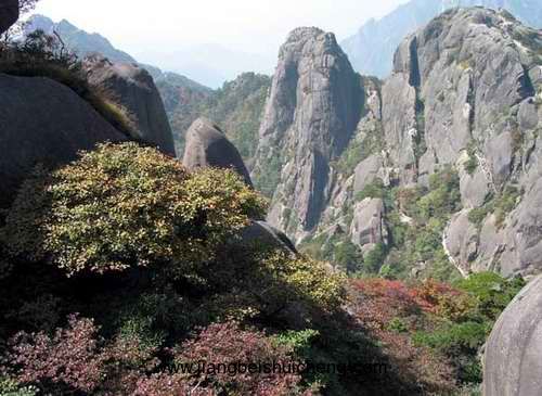 桃花峰位于黃山南端,西連云門峰,與紫石峰隔湯泉溪相望,為36大峰之一,海拔1460米。此峰土質(zhì)肥沃,草木繁盛。早先峰上多桃樹,人稱“十里桃花峰”,至今仍盛開不衰。每年3~4月,桃花山峰麓層層開至峰頂,如同錦霞,分外艷麗。前人曾有詩形容:“花開十萬樹,峰似繹霞披。”花謝之時,滿山紅瓣流入桃花溪,版權(quán)所有,山東聊城聊之旅國際旅行社有限公司,轉(zhuǎn)載必究!名曰“桃花湯”。峰便由此而得名。清黟縣人、雍正間舉人、名士胡與高有詩曰:“山頭桃花開,山中玉女笑。帝鄉(xiāng)無盡春,日日斜陽照。”詩中將桃花盛開和玉女歡笑糅在一起,給桃花峰抹上了一層春色長駐的浪漫色彩。關(guān)于峰上的桃樹為何人所栽,有兩種傳說:一說當(dāng)年軒轅黃帝來黃山煉丹時,看到桃花峰上缺花少木,乃令眾臣遍栽桃樹,點車上觀之,更能看出它獨臥壑外,不與眾峰相接。故有詩云:“一峰貪枕自離群,萬古山中臥白云。盛世人皆爭貢獻(xiàn),汝甘壑外不人群?”