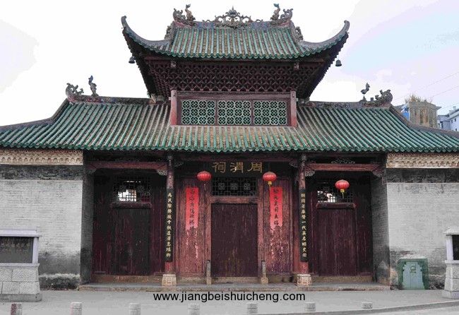 周渭祠即周王廟或嘉應(yīng)廟,是祭祀宋御史周渭的祀廟。位于恭城縣城東,建于明成化十四年(1478年),清雍正元年(1723年)重修。周渭祠占地面積1600多平方米,建筑面積1040平方米,由戲臺(毀于三十年)、門樓、大殿、后殿及左右?guī)拷M成。現(xiàn)為廣西壯族自治區(qū)重點文物保護單位。