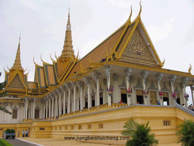 是諾羅敦國王于1866——1870年建造的,坐落在洞里薩河邊,也稱四臂灣大王宮,有寬敞平整干凈的馬路和大塊的草坪廣場,包含國王的住所在內(nèi)共有20余座建筑。王宮為長方形,長435米,寬402米,外有城墻。王宮的建筑具有高棉傳統(tǒng)建筑風(fēng)格和宗教色彩,宮殿均有尖塔,代表繁榮;殿身涂以黃、白兩色,黃色代表佛教,白色代表婆羅門教。王宮最初為木結(jié)構(gòu),后改建為水泥結(jié)構(gòu),但保持了原來的風(fēng)貌。版權(quán)所有山東聊城聊之旅國際旅行社有限公司,轉(zhuǎn)載必究!王宮內(nèi)還有銀殿(Silver Pagoda)和拿破侖三世博物館。銀殿因地面鋪有5000塊銀磚而得名,是由諾勒丹國王于1829年用意大利大理石所興建,寺內(nèi)收藏大量珍貴文物,包括一尊西索瓦國王的金制塑像(重90公斤,上嵌9584粒鉆石,最重的一顆達(dá)25克拉),一尊17世紀(jì)的大型翡翠玉佛像,一幅40多厘米高的鑲金壁畫等等。回廊的墻壁上繪有歷代王朝功績和宗教故事的壁畫,也是重要文物,并陳列著外國國家元首送的禮品。參觀王宮有時(shí)間限制,而且著裝必須整潔。黃昏王宮廣場上人很多,既有納涼的本地人和僧侶,也有天南海北的游客。