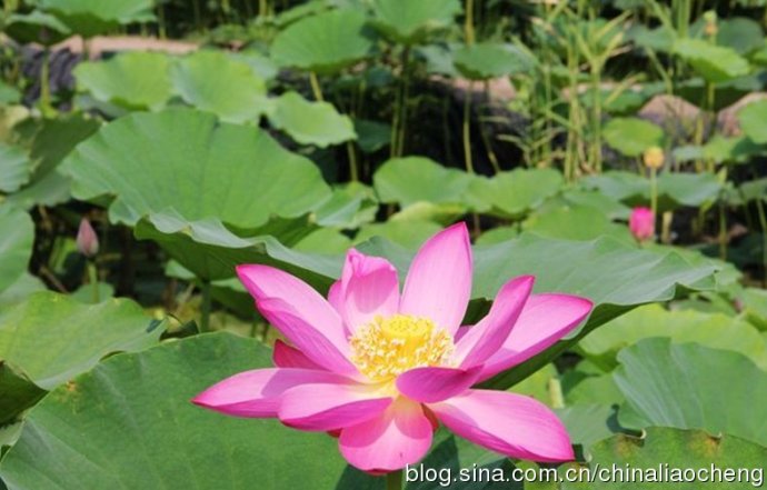 一個小亭子在滿園的荷葉中,顯得是多么挺拔啊