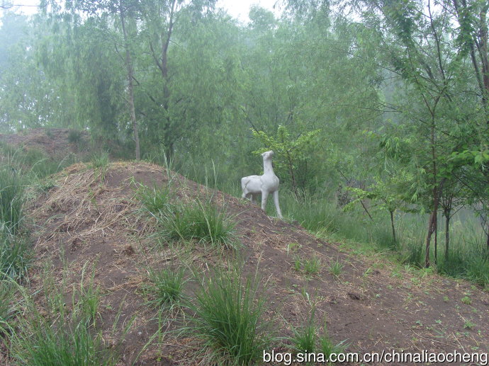 翠綠的樹叢中,一直石羊在山坡上昂首嘶鳴,好像是在呼喚著什么。讓人忍不住想跟隨它的眼光,向遠(yuǎn)方去眺望。