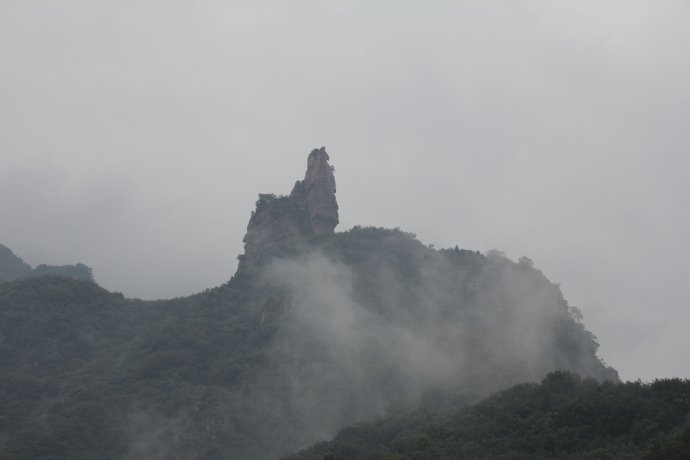 看對(duì)面山峰那個(gè)貌似頭戴方巾,長(zhǎng)須飄胸的老者似乎在講著什么,那就是“老子布道”,真的好像老子端坐在那一樣。想爬上山看看呢。可是好高怎么辦?!誒!!~那是???