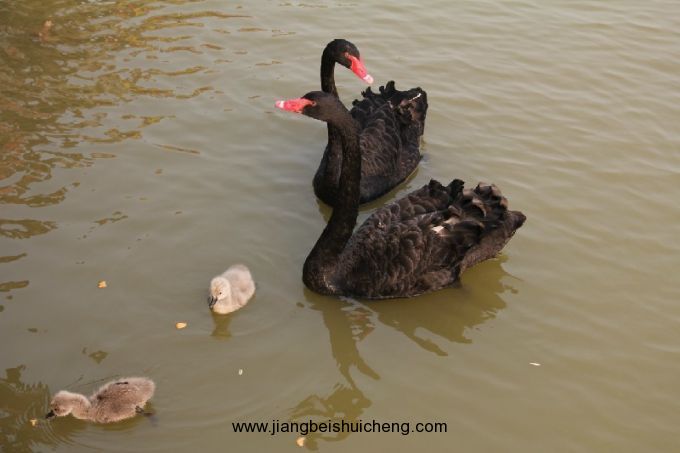 美麗的黑天鵝悠閑地戲水