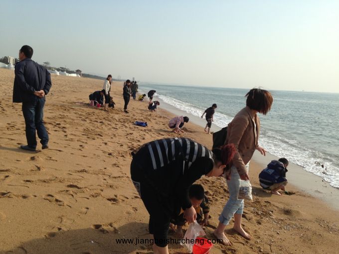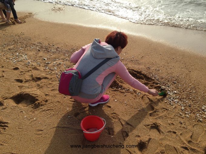 你看那個小男孩兒,被海浪打上來了吧,還是老實點兒玩沙子吧