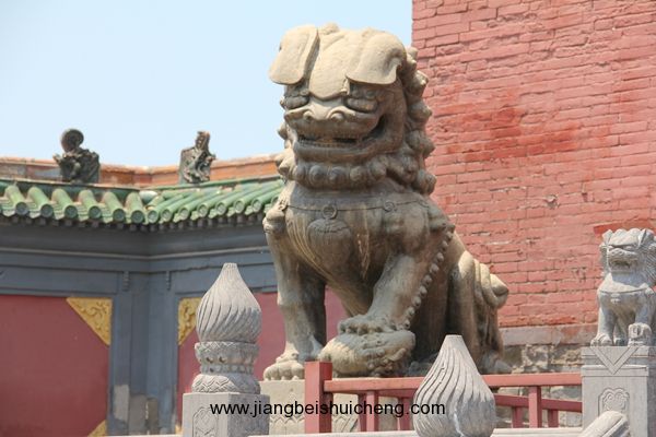 中華門外兩個石獅守衛(wèi),栩栩如生,為清代雕刻的代表作。東側(cè)雄獅口中,有直徑為15厘米的石雕圓球,西側(cè)雌獅前蹄按一小獅,工藝精巧,獨具匠心。