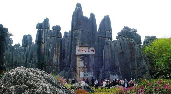 一天之計(jì)在于晨,黎明悄然而至,我們又開始活躍起來(lái)。吃過早飯,坐上大巴,一路歡歌笑語(yǔ),直抵石林。“石林是一座名副其實(shí)的由巖石組成的‘森林’,景觀資源十分豐富,不但具有世界喀斯特地貌的典型性、代表性和唯一性,還具有很高的美學(xué)、生態(tài)、科研、科普價(jià)值,被譽(yù)為‘造型地貌天然博物館’、‘天下第一奇觀’。。。”導(dǎo)游甜美的聲音不斷在耳邊游蕩,可是當(dāng)栩栩如生的士兵俑、詩(shī)人行吟、母子偕游等無(wú)數(shù)象生石一一闖進(jìn)我眼簾后,我就再也聽不見任何聲響了。這是怎樣的驚心動(dòng)魄,大石林“劍鋒池”里觀“秘林”,曲折迂回后,小石林的“阿詩(shī)瑪”又散發(fā)出五彩斑斕的光,攝人心魂;還有一處“鐘石”,竟能敲出許多種不同的音調(diào)。這是大自然的鬼斧神工,深、幽、險(xiǎn)、奇,給人類的饋贈(zèng)。
