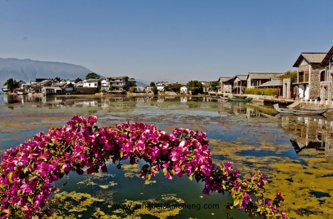 雙廊自古就是名人學(xué)者滯留的地方,古有楊升庵、李元陽(yáng),今有舞導(dǎo)家楊麗萍、作家蘇童、畫家趙青等。或許雙廊就是一處圣地,躋身于此,我感受到從未有過的平靜與安逸,仿佛自己真的就遠(yuǎn)離了塵世,找到了夢(mèng)幻中的祥和。而玉璣島也給了我同樣的感覺,風(fēng)光秀麗的玉璣島、與南面的金梭島南北相對(duì),二島猶如浮在水面的一對(duì)鴛鴦,再加上,拍打礁石的陣陣海浪聲,真真是應(yīng)了一句話,置身于此,只羨鴛鴦不羨仙。島上人家民風(fēng)淳樸,我們路過一戶人家,好客的白族主人熱情地邀請(qǐng)我們進(jìn)去坐坐,閑話家常,一瞬間,我錯(cuò)覺到,我不是在旅游,卻像是回到了家一般,如此溫馨。
