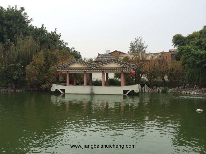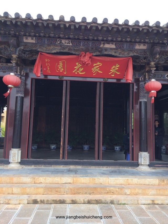 朱家花園坐南朝北,入口為垂花大門。左側(cè)沿街的10間“呆腳樓”與其后的“跑馬轉(zhuǎn)角樓”相連,是當(dāng)年的帳房和資供應(yīng)鋪面等,是朱家經(jīng)營(yíng)進(jìn)出口貿(mào)易,買賣大錫、洋紗布匹、食鹽、煙土的“朱恒泰”總商號(hào)。右側(cè)前為家族祠堂,后為內(nèi)院。祠堂前有水池,水上有戲臺(tái)、亭閣、庭蔭花木等。水池邊有右欄。