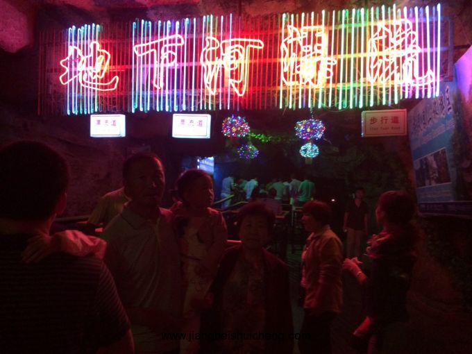 第二天游覽地下大峽谷,地下大峽谷最出名的游玩項目當屬地下漂流。地下河漂流項目經過改造,漂流長度由原來的723米延長到1000米。該項目已經得到上海大世界吉尼斯記錄總部的認證,被譽為中國最長的溶洞漂流項目[。漂流道的改造設計充分體現(xiàn)了溶洞內的幽深莫測,起伏高下,波激浪涌,抑揚頓挫的特點和恐龍模型的陣陣吼聲,將地下河漂流的原生野始,驚險刺激演繹的淋漓盡致。