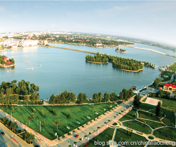 湖濱公園是以東昌湖為依托建設(shè)的一處市內(nèi)開放式大型公園。這里原是一片沼澤地、蘆葦蕩,僅有一些低矮平房。從2000年開始,我市投資3億多元,完成拆遷3萬多平方米,修建園區(qū)道路2萬平方米,種植草坪60多公頃,栽植各類喬灌木20余萬株,建成了占地1600余畝的湖濱公園。在湖濱公園道路廣場的設(shè)計中,力求“園景設(shè)路、路從景出、路出自然”,體現(xiàn)渾然天成的藝術(shù)風格。在游人可駐足觀賞、留影的地方,適當擴寬路面;小型廣場中心或路邊,設(shè)有雕塑、浮雕、噴泉、花坊、花缽、石凳等園林小品分布其間。自北向南,騰龍廣場、旱噴廣場、生肖廣場、綠葉廣場、金鳳廣場,形式各異,獨具特色。水面寬20米、長達 2000米的湖濱渠穿插其中,與東昌湖交相輝映,渠上13座風景橋造型別致。從空中俯視,整個公園像一條綠色的、鑲滿翡翠寶石的霞披披在東昌湖肩上,使東昌湖變得更加美麗動人。
