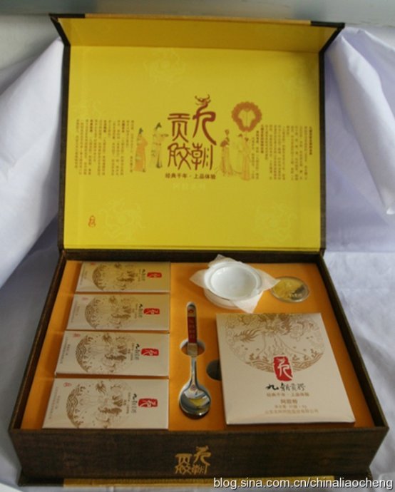 李時珍在《本草綱目》中稱之為“圣藥”。與人參、鹿茸并稱“中藥三寶”。有關(guān)阿膠的記載最早見于《神農(nóng)本草經(jīng)》,距今約有二千年。書中寫道:阿膠“生東平郡,煮牛皮作之,出東珂。”可見阿膠最初是用牛皮熬制的。傳至唐代,人們發(fā)現(xiàn)用驢皮熬的阿膠,藥用功效更好,便將牛皮改為驢皮,并沿用至今。