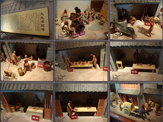 中國阿膠博物館共分為十一個(gè)展廳,由古代和現(xiàn)代兩部分組成。古代部分主要體現(xiàn)阿膠從古至今的發(fā)展演化過程,力求以直觀的視覺效果把古代東阿人的智慧展現(xiàn)于參觀者面前;現(xiàn)代部分主要表現(xiàn)的是現(xiàn)代阿膠人的艱辛創(chuàng)業(yè)和輝煌成就。