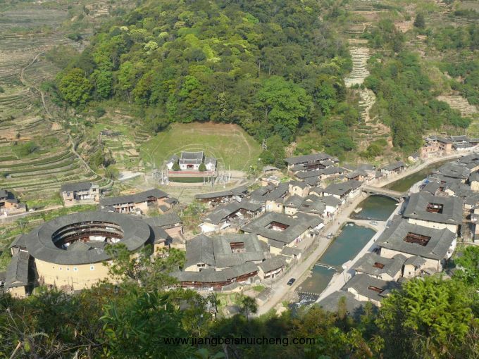 塔下村位于福建省漳州市南靖縣書洋鎮(zhèn)西部,是漳州著名的僑鄉(xiāng),也是首批15個中國景觀村落之一。被譽為“閩南周莊”,這個村的歷史悠久, 建于1426年,現(xiàn)有300多戶人家,土樓沿河而建,并非常均勻地分布在兩岸,土樓形態(tài)豐富,有常見的方形、圓形土樓,還有圍裙形、曲尺形土樓,最獨特的是還有浙杭水鄉(xiāng)模式單院式土木、磚木結(jié)構(gòu)的吊角樓,形成大樓帶小樓、高低錯落布局的奇妙景觀。