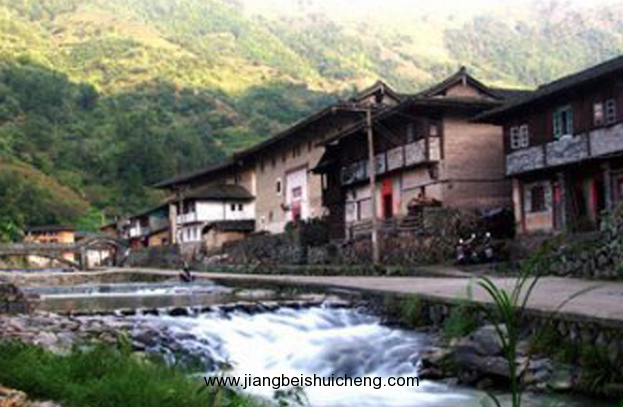 塔下村是一個中國典型客家村落。這里兩座自南而北的蜿蜒大山,如巨臂攬住一道生機勃勃的峽谷,山中古木參天,碧綠如黛;竹林茂密,翠接云天;林陰深處,青氣浮浮;淡淡靄霧,劃出幾道弧線,托出村落恍若蜃樓的起伏檐角。一道彎彎曲曲的山溪從峽谷中穿過,溪水快快活活地流淌,水色清明澄碧。清純?nèi)玑劦目諝猓屓诵岢鲈S多逝去的年代,追尋歷史行走的印記。為敬奉先祖,弘揚祖德,塔下張姓族人于明朝后期在村莊東面山坡、肇基始祖原住地上建造了“張氏家廟”德遠堂。家廟后面是一片眉月形斜坡的草地,宛若天然地毯。草地連著一片蔥郁的風(fēng)水林,樹林隨著山峰向上延伸,直入云天,風(fēng)吹林濤,氣勢磅礴。版權(quán)所有,山東聊城聊之旅國際旅行社有限公司,轉(zhuǎn)載必究!家廟前是一口半圓形池塘,塘中魚兒遨游,廟宇疏影,給人增添了幽美的意境。池塘前邊兩側(cè)石坪上聳立22支高過10米的石龍旗桿,桿柱浮雕蟠龍,騰云駕霧,勢欲騰飛。村中那條奔流不息的溪流,每天都把清澈和潔凈送到家家戶戶,這條與村民息息相關(guān)的溪流,建國前從村頭到村尾只有三座木橋。若遇山洪暴發(fā),木橋被沖毀,只相隔30多米寬的兩岸村人便中斷過往,后來在熱愛家鄉(xiāng)的僑胞資助下,溪流上建造了11座石拱、鋼筋水泥橋,使兩岸村莊衣帶相連。小橋流水、土樓人家,把塔下村裝點得分外妖嬈。陽光燦爛的清晨,村婦們提著木桶,領(lǐng)著孩子,到溪邊洗衣,把鮮艷的色彩和款款的談笑聲一起流進水里,閃閃爍爍。