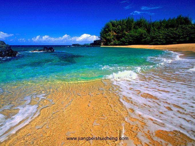 在 Kanai 的美麗海灘和峭壁上常常可以在電影里找到。在大島〈Big Island〉 上有著非常吸引人的黑、白和綠沙的海灘,Kilauea 火山每年還繼續(xù)的噴出巖漿以生產(chǎn)島上未來的沙灘。