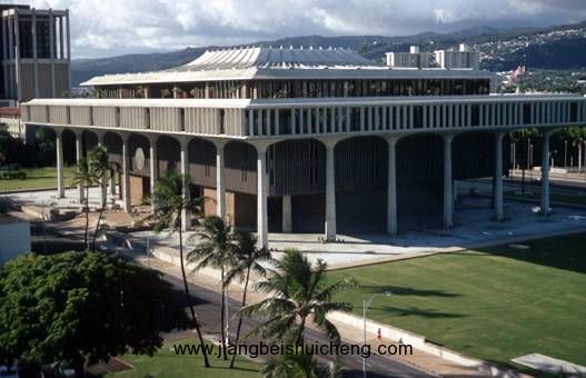夏威夷州議會大樓,自1969年起這里成為夏威夷州政府所在地夏威夷的經(jīng)濟(jì)主要以旅游業(yè)為主,其美麗的熱帶風(fēng)光每年吸引數(shù)以百萬計的全世界各地游客。