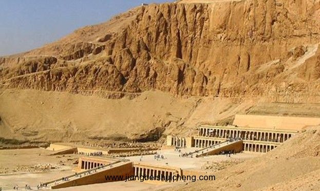 女王陵位于尼羅河西岸,它是古埃及女王哈特舍普蘇特為了自己和她的父親,請建筑設(shè)計(jì)師森穆建立的陵墓。女王陵地處于山谷中,早先曾經(jīng)是為牛神建造神殿的地方,后改址建別處,這個(gè)地區(qū)則被建筑設(shè)計(jì)師選用,并且巧妙地利用了向四周擴(kuò)展的巖壁,使女王陵依山而建,與山一體,外形新奇,在建筑史上有革命性的意義。