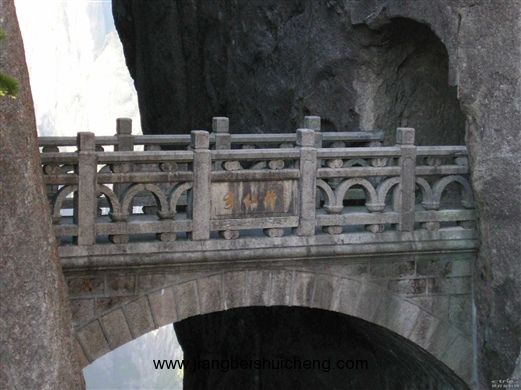 一座小小拱橋在兩座峭壁之間懸空而架,橋下是萬丈深淵,十分險(xiǎn)峻而富有情趣。步仙橋?qū)?mèng)幻景區(qū)和天海、白云景區(qū)連接在一起,一頭通向黃山西大門釣橋庵,一頭可通天海。作為繞谷路線地標(biāo),是很多愛冒險(xiǎn)的游客必到之處。