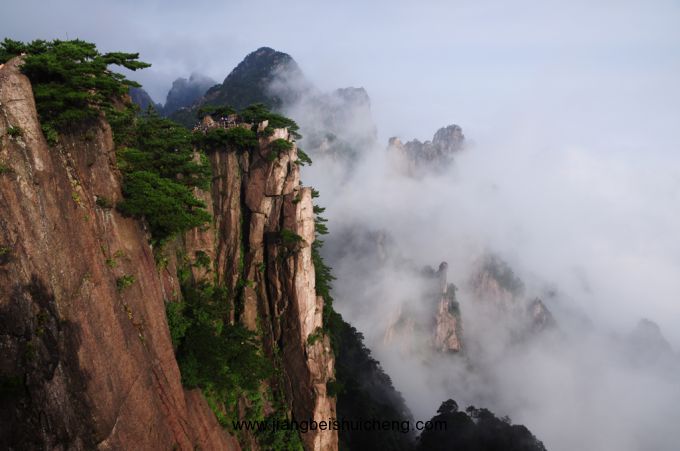始信峰的特點(diǎn)是巧石爭妍,奇松林立,三面臨空,懸崖千丈,云蒸霞蔚,風(fēng)姿獨(dú)秀。