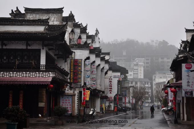 這里全是馬頭墻、小青瓦、白粉墻;磚木結構的鋪面,精巧玲瓏的樓閣、鏤刻精美的花紋圖案,加上小門、大堂、天井、屋與屋之間的深窄小巷,錯落別致,熱鬧繁華,顯示了徽派建筑格局的古樸典雅,別有情趣。為了適應旅游事業(yè)的發(fā)展,還在專辟的一段“古代街”上設有茶樓、酒肆、書場、墨莊,古趣盎然,吸引了眾多的中外游客前來觀光、購物。