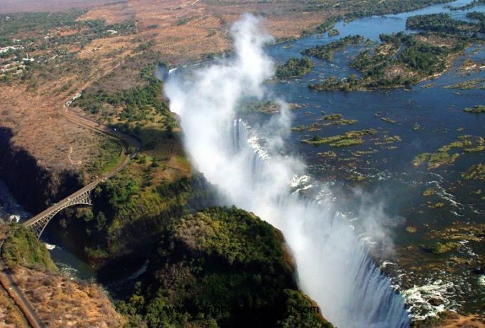 世界遺產(chǎn)委員會評價:這是世界上最壯觀的瀑布之一。魔鬼瀑位于贊比西河上,寬度超過兩公里,瀑布奔入玄武巖海峽,水霧形成的彩虹遠隔二百公里以外就能看到。