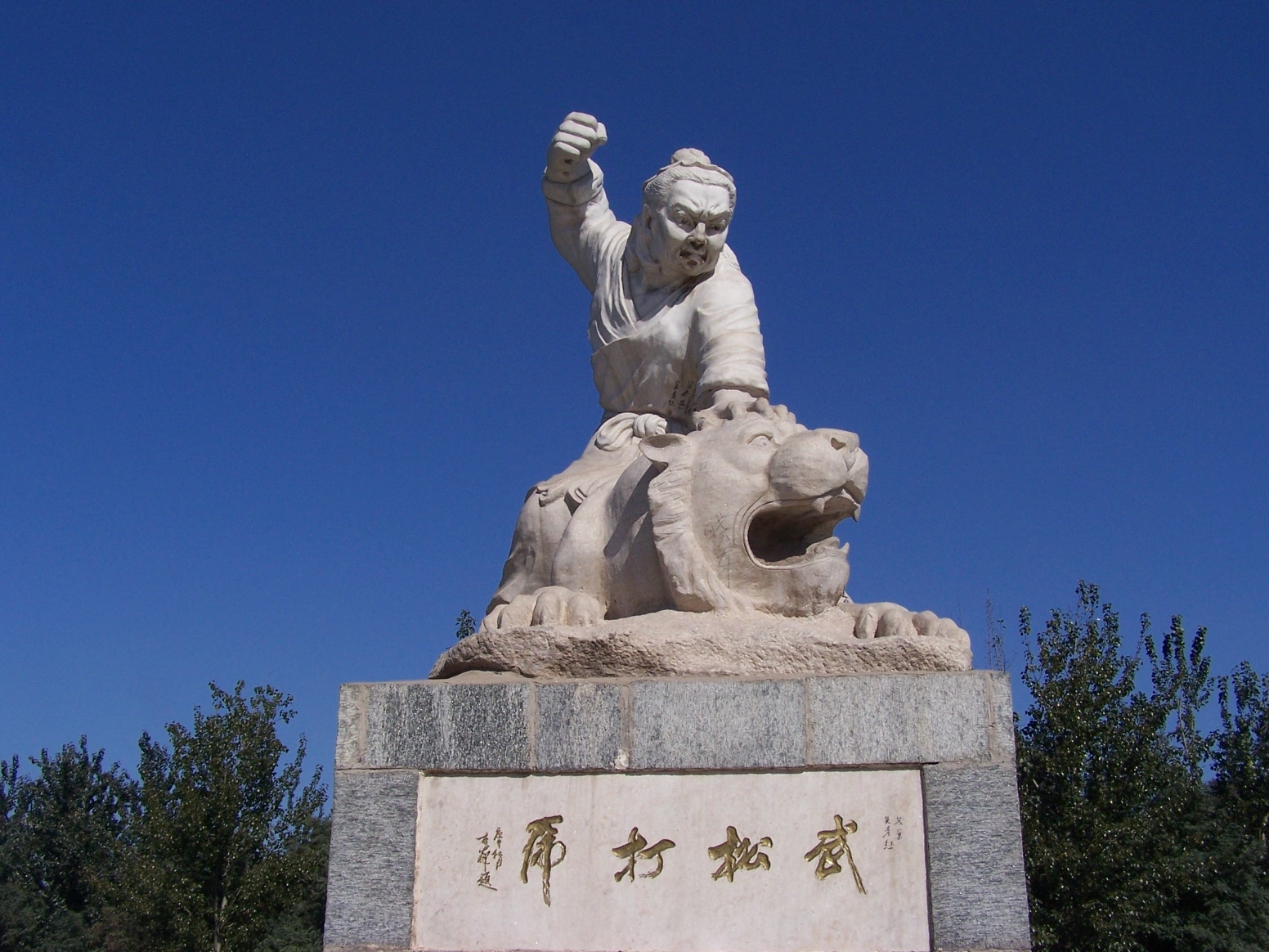 內(nèi)容敘武松打死惡霸李家五虎,逃至柴進(jìn)莊上。后因思念兄長,辭別柴進(jìn)回家探親,途經(jīng)景陽崗,在崗下酒店連喝十八碗好酒。武松欲離店過崗時,被酒家攔住,告知景陽崗上有猛虎傷人。武松不聽勸阻,執(zhí)意過崗,乃至山神廟見到陽谷縣告示,方信真的有虎,決心打虎為民除害。來至山高林密處,酒勁上涌,睡倒青石板上。一聲虎嘯,武松驚起,見猛虎撲來,武松與虎展開搏斗,幾經(jīng)周折,方將老虎摁住,踢打一陣,將虎制死。