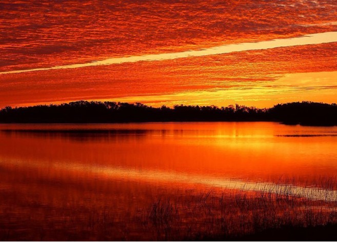 不少優(yōu)秀的日出日落攝影作品都是在水邊完成的,因?yàn)樵谌粘龌蛘呷章涞臅r(shí)候,波光鱗鱗的水面倒映出美麗的彩霞,水面上的船只帆影給畫面平添了幾分生動(dòng),確實(shí)是很不錯(cuò)的攝影題材。拍攝水面倒影會(huì)使日出和日落的照片增色,平靜的海面或湖面能反映天空中的景物。呈現(xiàn)出如鏡中一樣的影象,而拂過水面的微風(fēng)總是會(huì)擾動(dòng)這種倒影。在水面上留下條更加耀眼的光線,并從地平線到畫面的前景之間勾畫出一條光路,當(dāng)太陽漸漸下落時(shí),這條光路會(huì)延伸到你的眼前。所以,在水邊拍攝的時(shí)候首先需要注意的是構(gòu)圖的因素,按下快門之前,是不是已經(jīng)將水平線擺好了位置?是不是已經(jīng)將我需要的景物都包含進(jìn)去了?這些都是值得注意的問題。測光的時(shí)候,一般是選擇平均測光模式,這樣才能使整個(gè)畫面的光線分布均勻,不至于過曝或者欠曝。