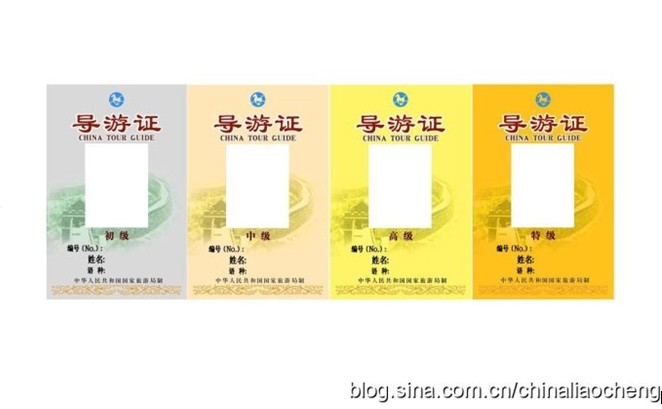 四、導(dǎo)游證正面設(shè)置中英文對照的導(dǎo)游證(CHINA TOUR GUIDE)、導(dǎo)游證編號、導(dǎo)游等級等項(xiàng)目,并在中部貼持證人近期免冠2寸正面照片,背面設(shè)置持證人姓名、性別、身份證號碼、導(dǎo)游資格(等級)證書號碼、語種、服務(wù)旅行社、發(fā)證機(jī)關(guān)(鋼印、發(fā)證日期和有效期限三年等項(xiàng)目。 臨時導(dǎo)游證正面用不易為公眾看出的字體寫有"臨時"二字,無導(dǎo)游等級和導(dǎo)游資格(等級)證書號碼,背面增設(shè)工作單位項(xiàng)目,有效期限為三個月,其余同導(dǎo)游證。