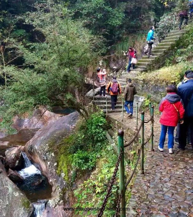 牯牛降雨量充沛,溪流縱橫,溪水常流不斷,潺潺流水,從山頂淙淙而下,遇有石壁斷崖,飛瀉直下形成一道道水瀑,大的如銀河落九天,空谷轟鳴,水汽升騰;小的似白練輕垂,涓涓細(xì)流,如泣如訴。十步一小瀑,百步一大瀑,飛瀑相連,蔚為壯觀。