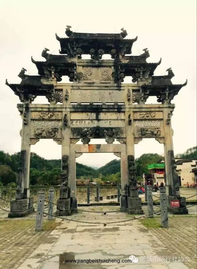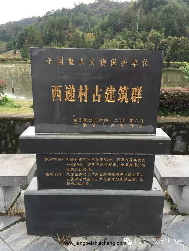 西遞鎮(zhèn)村前的牌樓西遞始建于宋朝的元祐(宋哲宗)年間,由于河水向西流經(jīng)這個(gè)村莊,原來(lái)稱(chēng)為“西川”。因古有遞送郵件的驛站,故而得名“西遞”。