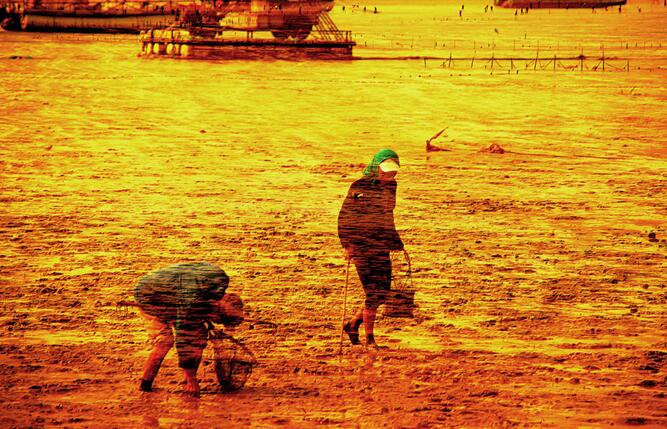 第二天早餐后驅(qū)車紅光漁業(yè)社,乘船隨潮水下海拍攝拾貝、踩蛤場(chǎng)景。午餐在船上食用,盡享漁民生活。下午2點(diǎn)左右返回,拍攝沿海的濕地風(fēng)光后返程。