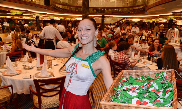 4、希望在客艙內(nèi)享用歐式早餐的游客,可在就寢前填寫(xiě)點(diǎn)菜單并將其掛于門外把手。這項(xiàng)服務(wù)將按點(diǎn)菜單指定的時(shí)間免費(fèi)提供。特殊早餐(僅在特定的船上)如果你想要在客艙內(nèi)享用一頓為特殊情況準(zhǔn)備的早餐,你可以在多種新鮮水果和果汁中進(jìn)行選擇,一頓浪漫的由紅玫瑰點(diǎn)綴的早餐,帶有魚(yú)子醬,大馬哈魚(yú),以及香檳!特殊早餐將由您的歌詩(shī)達(dá)卡付費(fèi)。