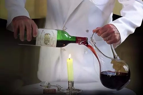 1、把葡萄酒從一個醒酒器倒入另一醒酒器中,然后重復(fù)一兩次這個動作;