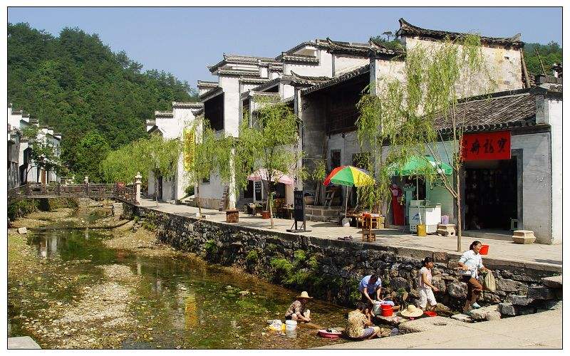查濟古村可以看見的似乎只是陳舊破碎的景象,農(nóng)婦在溪水中洗衣,犬寵在巷中慢走,然而,昔日的繁華卻變成今日平靜的農(nóng)居生活。
