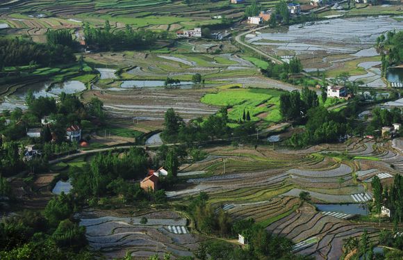 如果說(shuō)云南、貴州、廣西、四川的梯田是是壯美的樂(lè)章,那么固始梯田就是靈動(dòng)的音符。如果你來(lái)到固始,你就感受到固始武廟梯田別有一番獨(dú)特美景。她鑲嵌在青山碧水之中,房舍阡陌點(diǎn)綴其間,小巧雅致,玲瓏剔透,如世外桃源,似天上人間。。。。。。