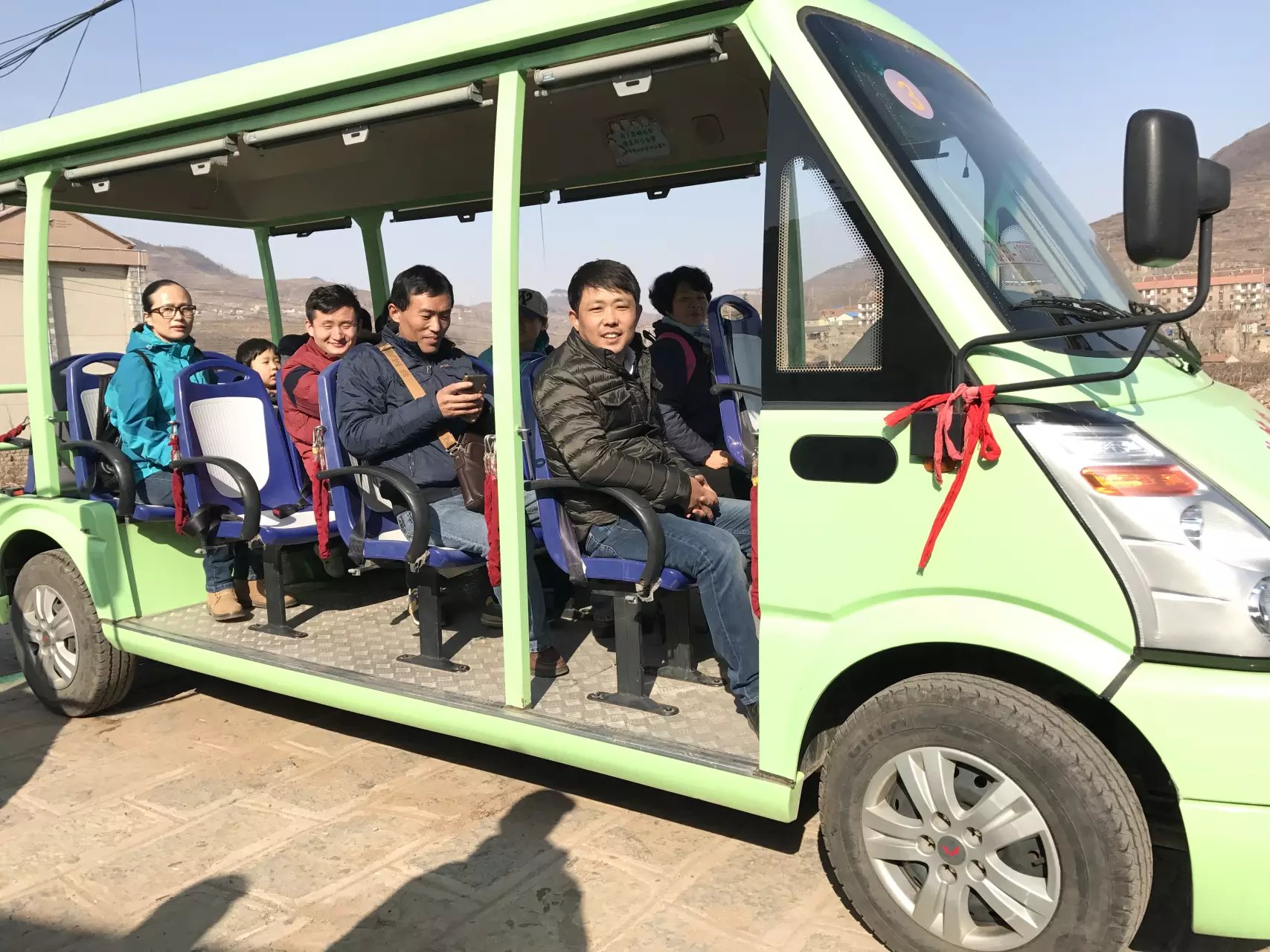 乘坐觀(guān)光車(chē)抵達(dá)崮上草原