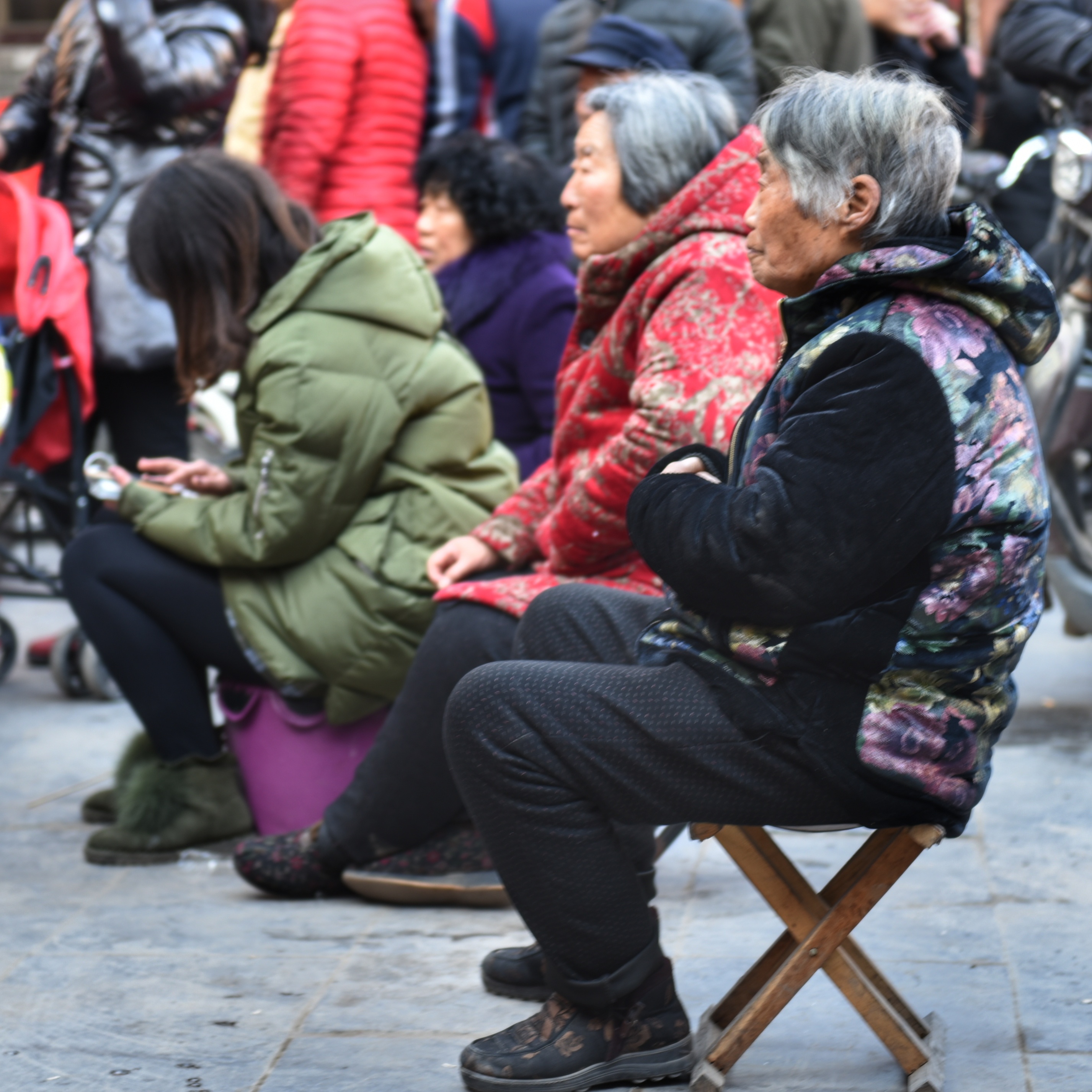 人群中居然有位美女也在看大戲,我想她應該是陪著自己的長輩來的吧,不然怎么一直低頭玩手機呢。
