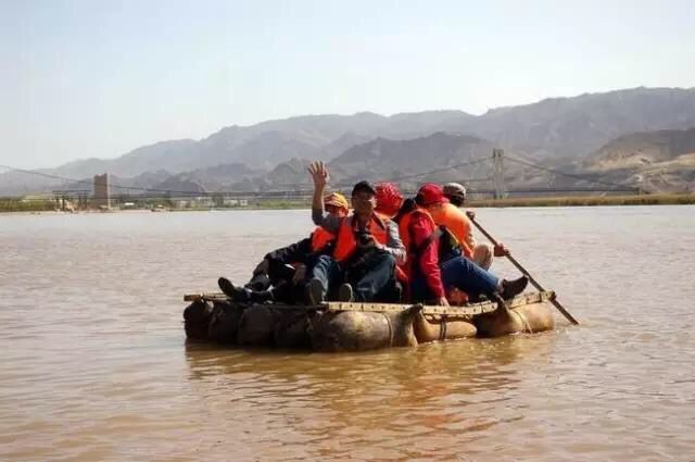 黃河上的非物質(zhì)文化遺產(chǎn)——羊皮筏子漂流。羊皮筏子也只在比較淺的水域行駛,因此坐筏子的感覺也少了些驚心動魄。坐在筏子上,低頭就能看見黃河水從羊皮胎的空當中悠悠穿過,向下一伸手穿過木架子就能撩到?jīng)鰶龅暮铀婷畹氖欠ぷ与S著水波蕩漾晃晃悠悠,乘客卻不會被水打濕,有點“我自端坐,任他風浪”的味道。