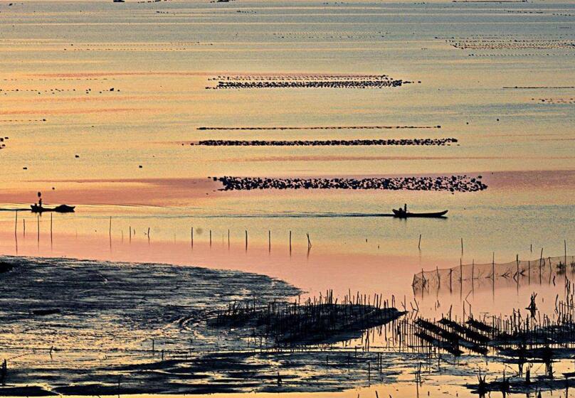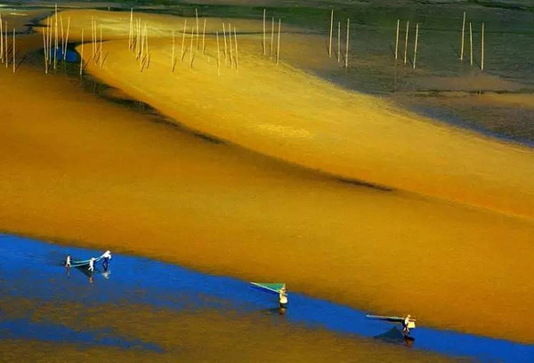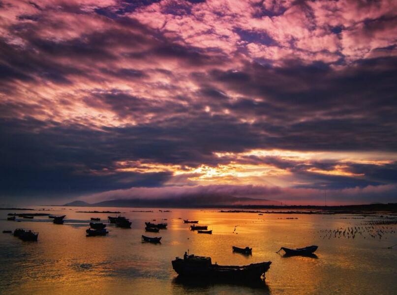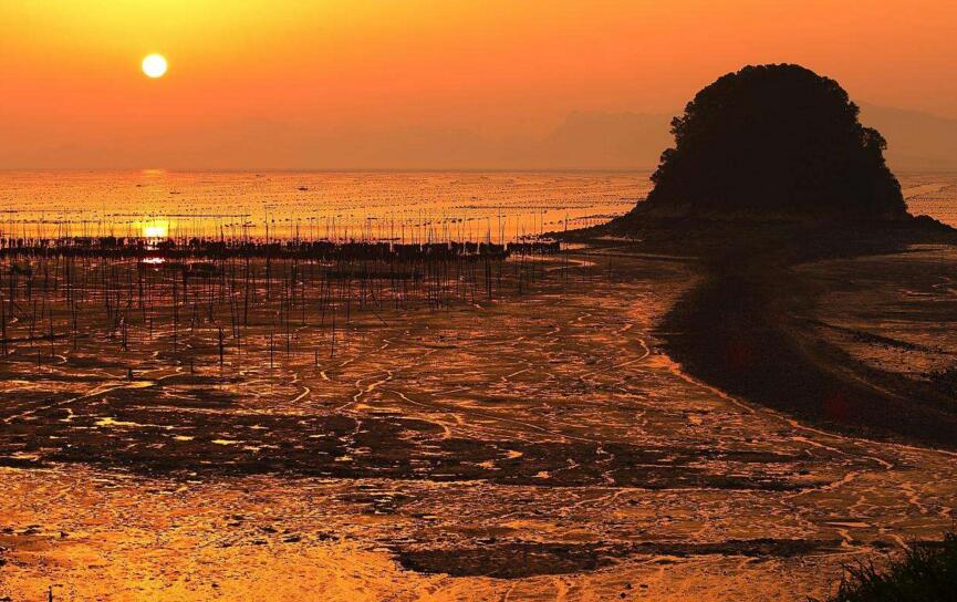 這里四季的潮汐變化、天光云影、原生態(tài)的海事活動,讓美麗神奇的海域瞬間迥異奇妙無比。那詭譎神秘的滿海竿影,那夢幻般的海上家園,那鷗鳥掠過浪尖撲騰灘涂,那金色沙灘褐色礁叢,那港灣遠(yuǎn)空的一抹紅云束光,海上日出日落……都是那樣靈動令奇絕。