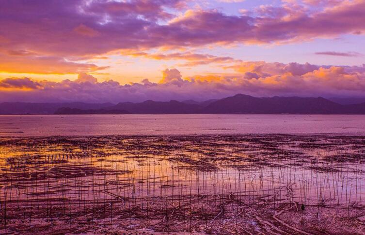 二、 潮汐不是拍攝霞浦唯一的因素,因為有些景點是不需要考慮潮汐的,譬如楊家溪,還有一些景點可能是漲潮時更好,譬如沙江、七都灘涂、鹽田灘涂、八尺門圍網(wǎng)在初一、十五前后去時間拍就不對。所以來霞浦拍攝不是說一次就能拍好、拍全,比如4月底至5、6月拍海帶,7、8月拍光影,拍臺風(fēng)天里的云彩變化。從9月底到12月份拍紫菜。時節(jié)不一樣,可拍攝的內(nèi)容場景不一樣。