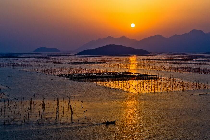 上午拍攝【北兜】一帶拍攝海上日出,接著到【沙江】,可以看到眾多線條優(yōu)美的竹竿插在灘涂上,著名的“S”灣和漁船進(jìn)出的繁忙景象。