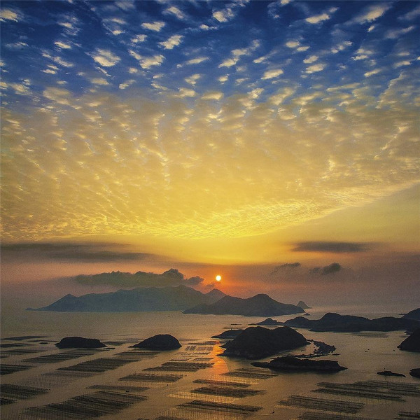 上午到【花竹】拍攝日出。花竹還是觀賞“福瑤列島”全景的最佳地點,尤其日出最為壯美,散射光照下,變幻莫測的色彩,展示出一種天人合一的壯美景觀。接著到福鼎的江邊村拍攝【八尺門】圍網(wǎng),漁民用于養(yǎng)殖螃蟹的竹竿和圍網(wǎng)形成各式的幾何圖形。