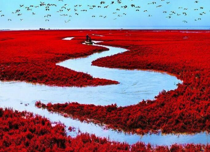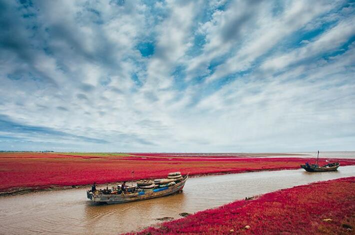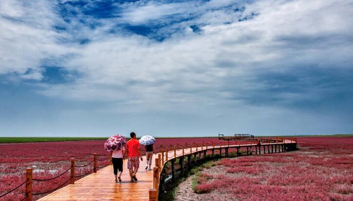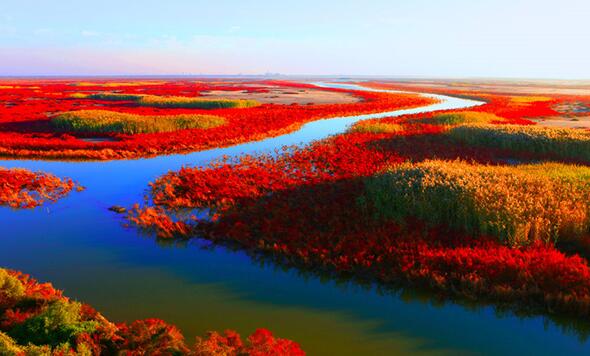 游覽后午餐,乘車前往我國北方最大的濱海濕地城市—盤錦市,抵達盤錦后前往游覽【盤錦紅海灘廊道】(游覽約3小時),紅海灘地處遼河三角洲濕地,位于盤錦市西南海濱,是由大片紅色的堿蓬草形成的著名濕地,紅海灘國家風(fēng)景廊道是紅海灘面積最大的景區(qū),在這里你可以漫步于木棧道、看紅如熾焰的堿蓬草在海岸線上無限延伸,而紅海灘遠處的油井在夕陽下更是一副迷人的畫卷,秋天來此還能看到金黃色的稻田與紅海灘相呼應(yīng),以及成群的候鳥展翅于灘涂的深處,游覽后晚餐,晚餐品嘗盤錦稻香河蟹宴,晚餐后入住酒店休息。
