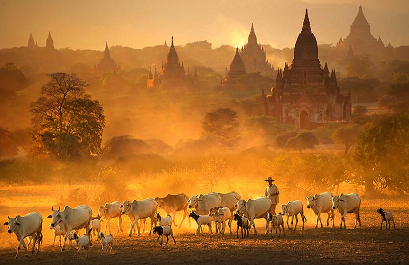 飯店內(nèi)早餐后,前往國內(nèi)機(jī)場,乘機(jī)飛蒲甘,大約1小時航程。古都蒲甘位于伊洛瓦底江畔,蒲甘佛塔群始建于十至十三世紀(jì)之間,非常具有藝術(shù)及考古價值。首先我們參觀蒲甘地區(qū)最古老的佛塔—【瑞喜貢塔】,之后參觀蒲甘最美的佛塔—【阿南達(dá)塔】,此塔在蒲甘眾多佛塔當(dāng)中色彩最豐富,建筑形制也最富于變化,塔內(nèi)四周供奉著四尊莊嚴(yán)祥和的佛主神像;接著參觀蒲甘最高的佛塔—【大冰瑜塔】,此塔有神廟之譽(yù)。下午參觀參觀蒲甘著名的手工藝品—【漆器】的制作,及精美的【柚木】雕刻品。傍晚登上靠近伊洛瓦底江邊的【日落塔】,欣賞色彩艷麗豐富的【蒲甘日落】美景。