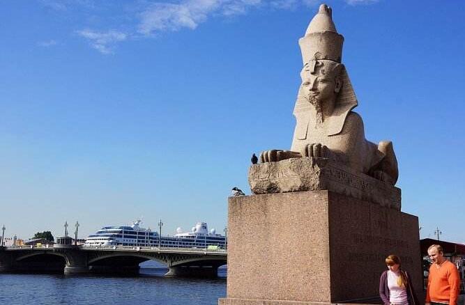 【獅身人面像雕塑】(參觀約10分鐘)這對獅身人面像是15世紀從埃及出土的文物,由俄羅斯政府購買并運回圣彼得堡擺放在了涅瓦河畔。