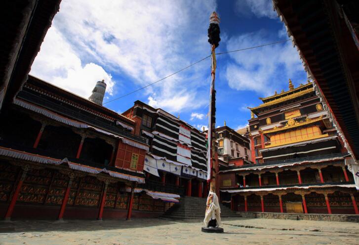 早餐后前往達(dá)古峽谷,該峽谷谷口寬闊,有農(nóng)田分布,谷內(nèi)多大石,并兼灌叢、稀松等皆縱橫裸露,頗為壯觀。由于雅魯藏布江在此處的下切作用加劇,所以谷內(nèi)多瀑布、跌水。該谷全長(zhǎng)約100多公里,上溯可至桑日縣。后驅(qū)車(chē)赴桑耶寺,途經(jīng)野生猴區(qū)隨時(shí)停車(chē)拍攝觀野生猴(可準(zhǔn)備點(diǎn)水果等食物喂猴子,喂食時(shí)請(qǐng)注意安全)。桑耶寺始建于公元8世紀(jì)吐蕃王朝時(shí)期,是西藏第一座剃度僧人出家的寺院。寺內(nèi)建筑按佛教的宇宙觀進(jìn)行布局,中心佛殿兼具藏族、漢族、印度三種風(fēng)格,因此桑耶寺也被稱(chēng)作三樣寺。桑耶寺現(xiàn)有50多僧人。當(dāng)天拍攝活動(dòng)結(jié)束后,入住山南澤當(dāng)鎮(zhèn)。