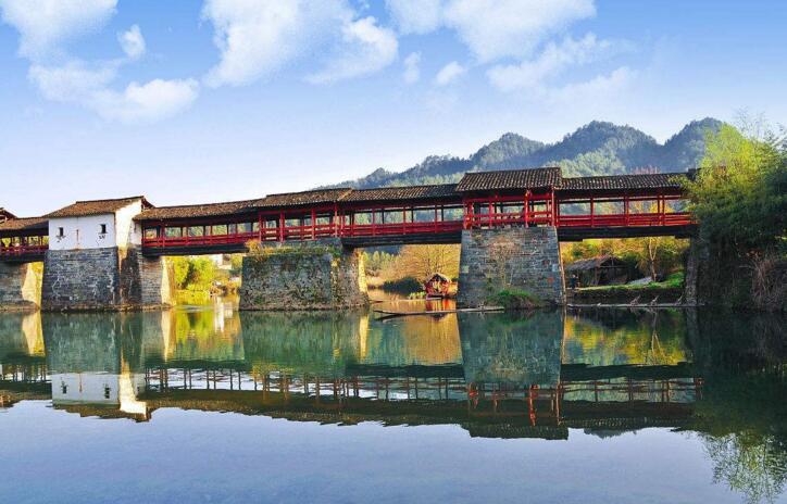 早餐后乘坐旅游大巴車(chē)赴【中國(guó)最美的廊橋——宋彩虹橋】彩虹橋歷史悠久,建于南宋,距今已有八百多年,是古徽州最估老、最長(zhǎng)的廊橋,被眾多媒體譽(yù)為“中國(guó)最美的廊橋”,這座橋取唐詩(shī)“兩水夾明鏡,雙橋落彩虹”的意思取名,彩虹橋周?chē)吧珒?yōu)美,青山如黛,碧水澄清,【乘坐彩虹橋游船】瀏覽四周風(fēng)光,會(huì)讓人深深體驗(yàn)到婺源之美。