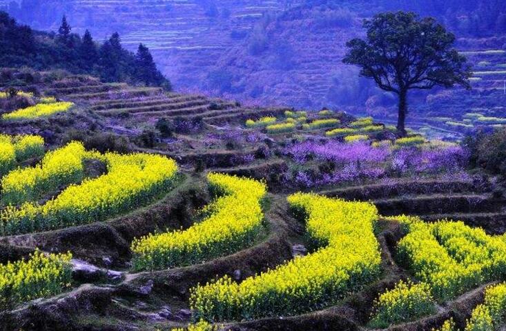【婺源王牌景點(diǎn) 世界級(jí)攝影基地—江嶺】“梯田風(fēng)光,天上人間”是中國(guó)四大花海之一,在海拔千米的高山上,梯田如鏈似帶,層層疊疊,高低錯(cuò)落,壯麗雄奇。遠(yuǎn)眺,白墻黛瓦掩在黃花綠樹(shù)間,陣陣云霧飄來(lái),恍若天上人間。古樹(shù),河流,梯田,農(nóng)舍,山頂人家……如夢(mèng)如幻的江嶺風(fēng)光。油菜花層層疊疊,一望無(wú)際,中間圍攏著幾個(gè)小小的村落,黑瓦白墻的徽派民居夾雜在一片金黃之間,在婺源沒(méi)有比這更壯觀而令人驚喜的了、融入其中,置身黃色花海,盡情放松愉悅身心。
